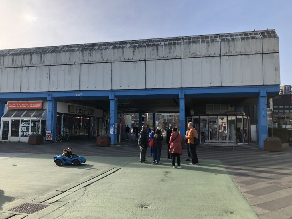 The walking tour continued through residential and commercial districts and then to Alexanderknoop, the central transit hub area, where Michelle Mandos (Strategic Advisor for Culture for the city of Rotterdam) joined the group for a discussion.